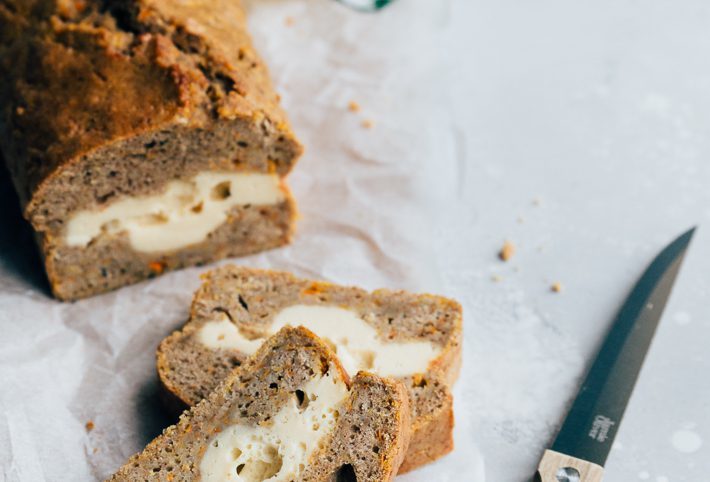 Zoals gezegd gebruiken we onze eigen carrotcake bakmix voor deze pompoencake. In plaats van geraspte wortelen voegen we pompoen toe. Dat is meteen ook het leuke van onze bakmixen, je kunt er eindeloos mee variëren. De bakmix bevat een stuk minder suiker dan de reguliere bakmixen in het schap. De cheesecake vulling maken we van roomkaas met een heel klein beetje honing erdoor voor wat extra zoetigheid. Want het moet natuurlijk wel lekker blijven.
