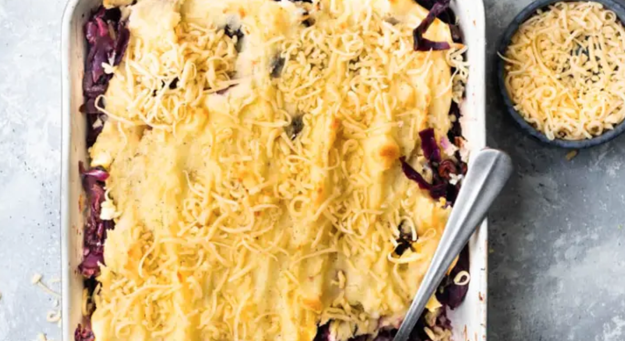 , boter en crème fraîche. Een vegetarische ovenschotel waar iedereen aan tafel naar uitkijkt! Tip: gebruik voor een extra snelle versie, rode kool die al gekookt is. Gemak dient de mens!