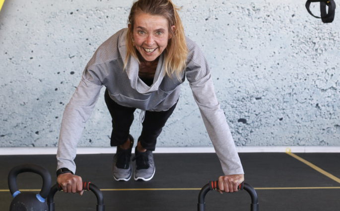 - Superset bench press (25 kilo x 10 herhalingen) + push-ups (6 herhalingen, 3 seconden zakken en 1 tel rust)