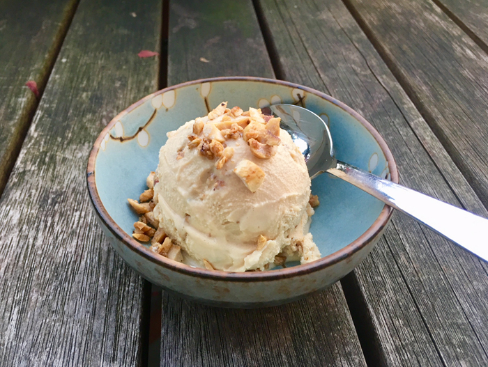 Vlak voor de zomervakantie blooperde ik wat af met hilarisch tevergeefse pogingen om karamelijs te maken. Maar zo gemakkelijk laat ik mij natuurlijk niet kennen, ha!, en het is met gepaste vreugde dat ik kan meedelen dat het intussen gelukt is. En hoe! Tadaaaa: karamelijs met gekarameliseerde hazelnoten. Die geven een fijn knapperig accent en maken het ijs nog onweerstaanbaarderder dan het van zichzelf al is.