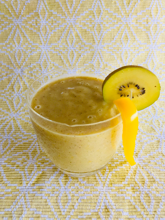 Had je je voorgenomen om 2021 nou eens gezond aan te pakken en wil je ’s ochtends wel eens wat anders dan boterhammen met hagelslag of een bakje yoghurt met granola? Dan is dit drinkontbijt misschien een idee. Ik had wat gele kiwi’s liggen en een halve gele paprika, en die twee bleken het heel goed samen te kunnen vinden. Bovendien draagt de paprika bij aan de zonnig gele kleur. Maar om te zorgen dat het niet ‘gewoon maar’ een smoothie wordt, gaat er ook havermout bij. Die zorgt ervoor dat je er voorlopig even op voort kunt. Laat de havermout wel eerst even wellen in (snelste methode) kokend water, dan wordt ‘ie lekker zacht en smeuïg.