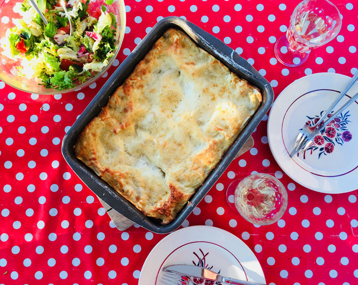 Ik weet het goed gemaakt, we doen vandaag groentelasagne. Laatst had ik een familieweekend in een huisje op de Veluwe, en ik bood aan om voor de eerste avond alvast eten mee te nemen. Dat werd dus een grote bak van deze vegetarische groentelasagne en hij ging schoon op. De truc is om eerst ratatouille te maken in de oven, zo krijgen alle groenten vanzelf enorm veel smaak, gratis en voor niks.