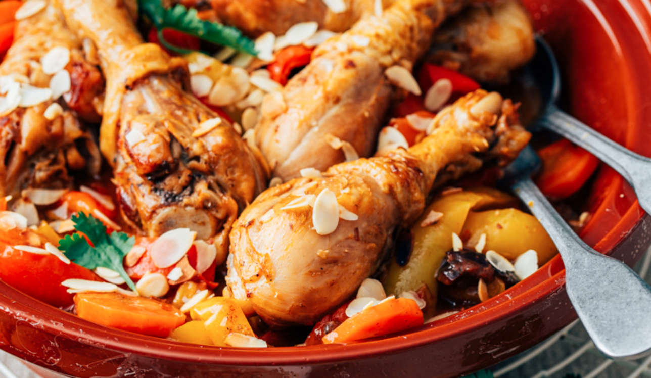 Wat is er nou lekkerder dan een pan die een uurtje op het vuur staat te pruttelen terwijl je hele huis naar de lekkerste kruiden ruikt? Deze Marokkaanse tajine met kip is echt zo’n gerecht waar ik blij van word. De combinatie van malse drumsticks met de zoete smaak van abrikozen en pruimen is echt een succesnummer. Alsof je op vakantie bent in Marokko, maar dan gewoon uit je eigen keuken.
