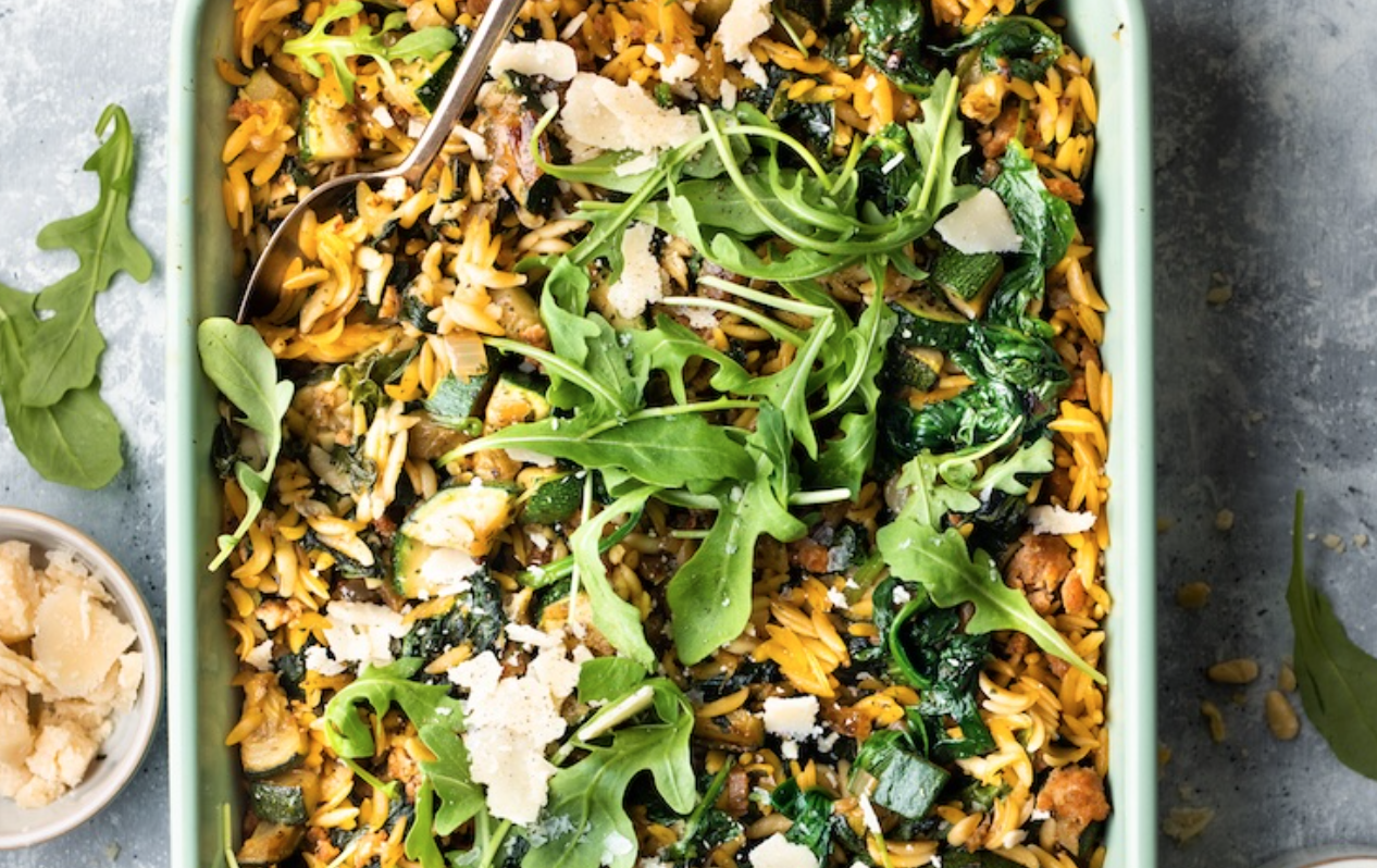 Een ovenschotel is voor ons altijd een beetje thuiskomen. Vooral op drukke dagen willen we iets dat lekker voedt, zonder al te veel gedoe. Deze orzo ovenschotel met spinazie en worst is daar het perfecte voorbeeld van. Alles in één schaal, bomvol groenten, en ook nog eens super smaakvol.