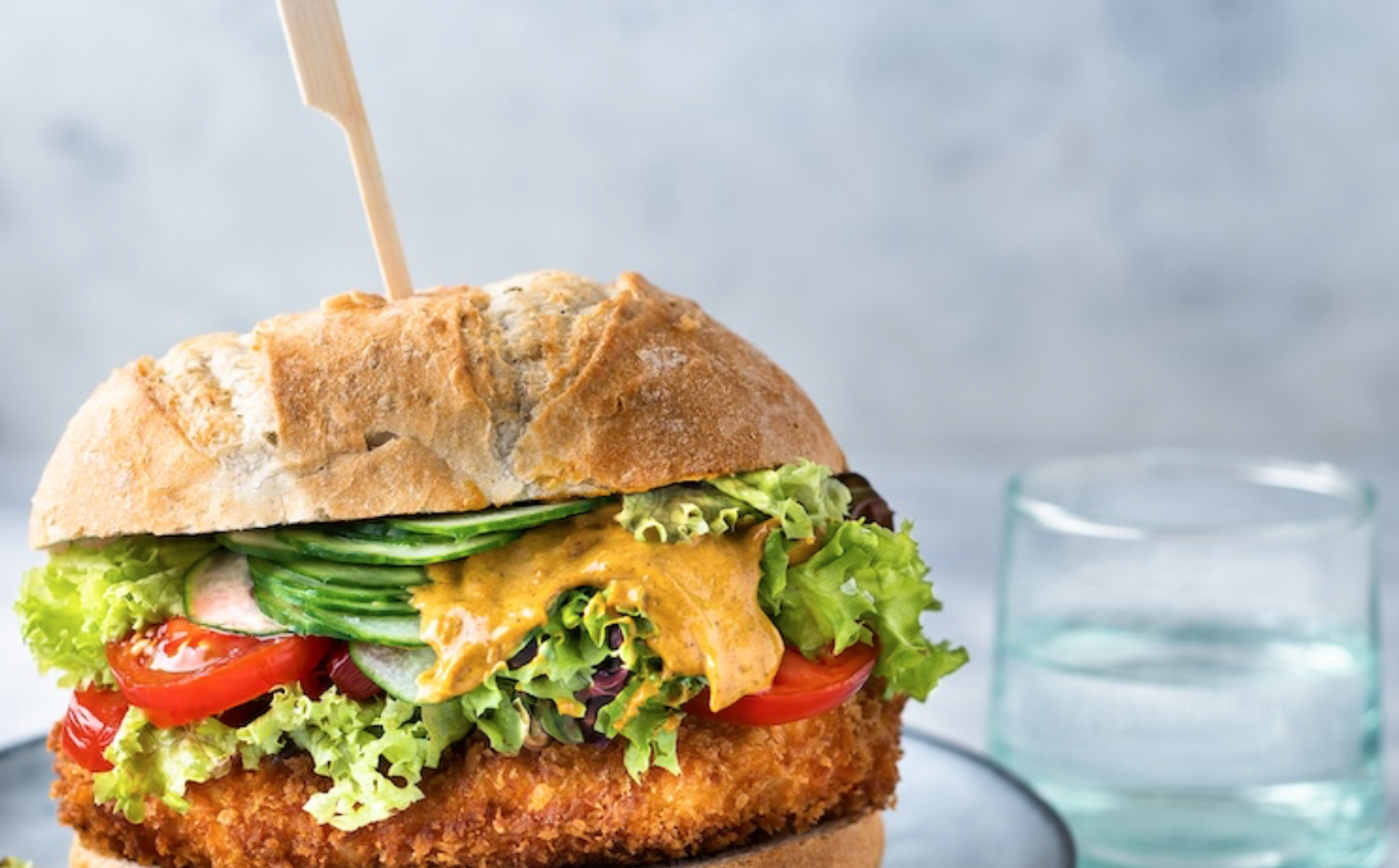 Een paar plakjes frisse komkommer en tomaat erop, een flinke klodder van die pittige mayo, en je hebt een burger waar je met een heel tevreden gevoel je tanden in zet.