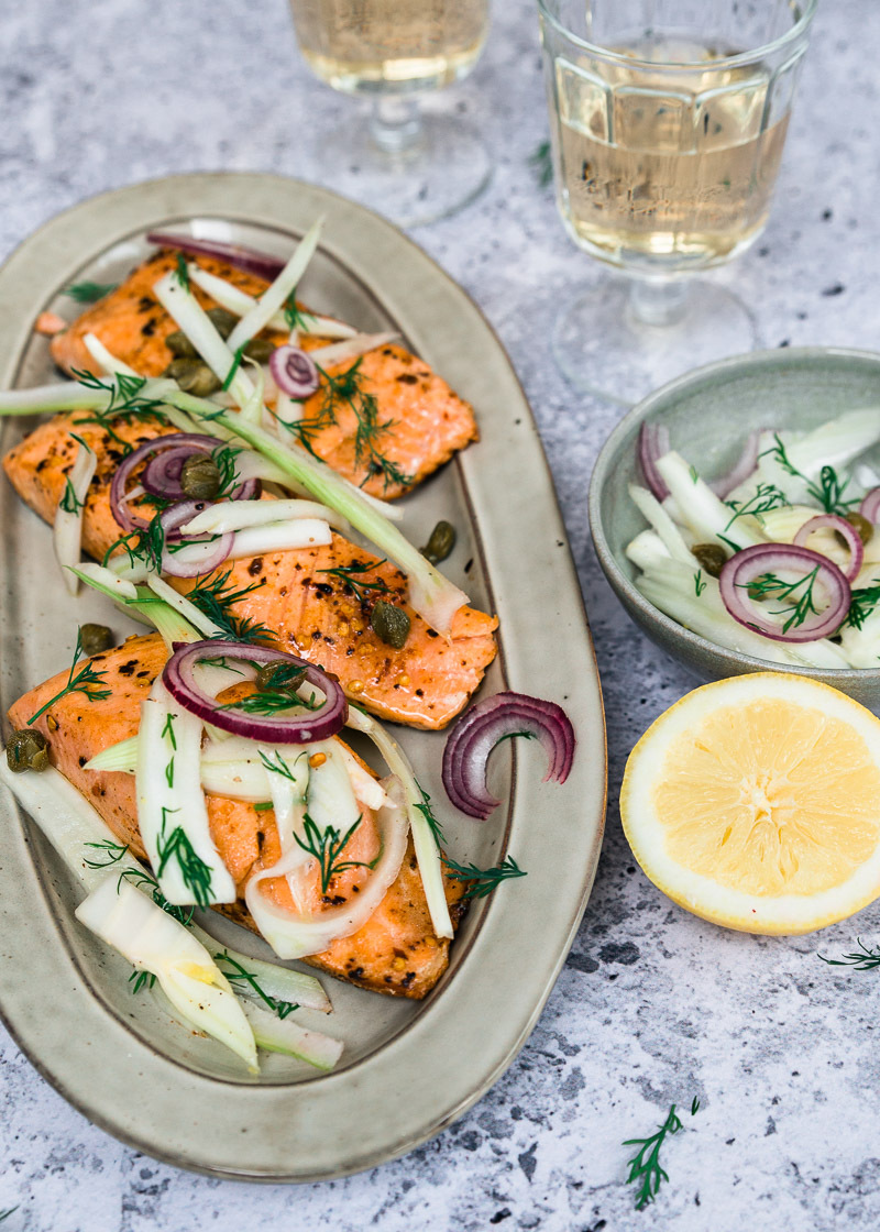 In menig restaurant vind je op de huid gebakken zalm op de kaart. Dit klinkt heel chique en ingewikkeld maar zelf een perfecte zalm bakken is echt heel eenvoudig. Je kan zalm met of zonder huid kopen. Met huid is eigenlijk alleen lekker als je dit krokant bakt, dan krijg je zo’n lekker crispy velletje (in alle andere gerechten kan je de huid het beste verwijderen). Op de huid bakken doe je door de zalm heel langzaam te garen in boter en olie. Als hij voor 3/4 gaar is, draai je hem om en bak je de andere kant ook nog even kort. Tussentijds kom je er eigenlijk niet aan. “Je stond er bij en je keek ernaar” zeg maar. Het is de bedoeling dat je de zalm (net als bij biefstuk) niet helemaal door gaart, medium gaar is hij echt het lekkerste.