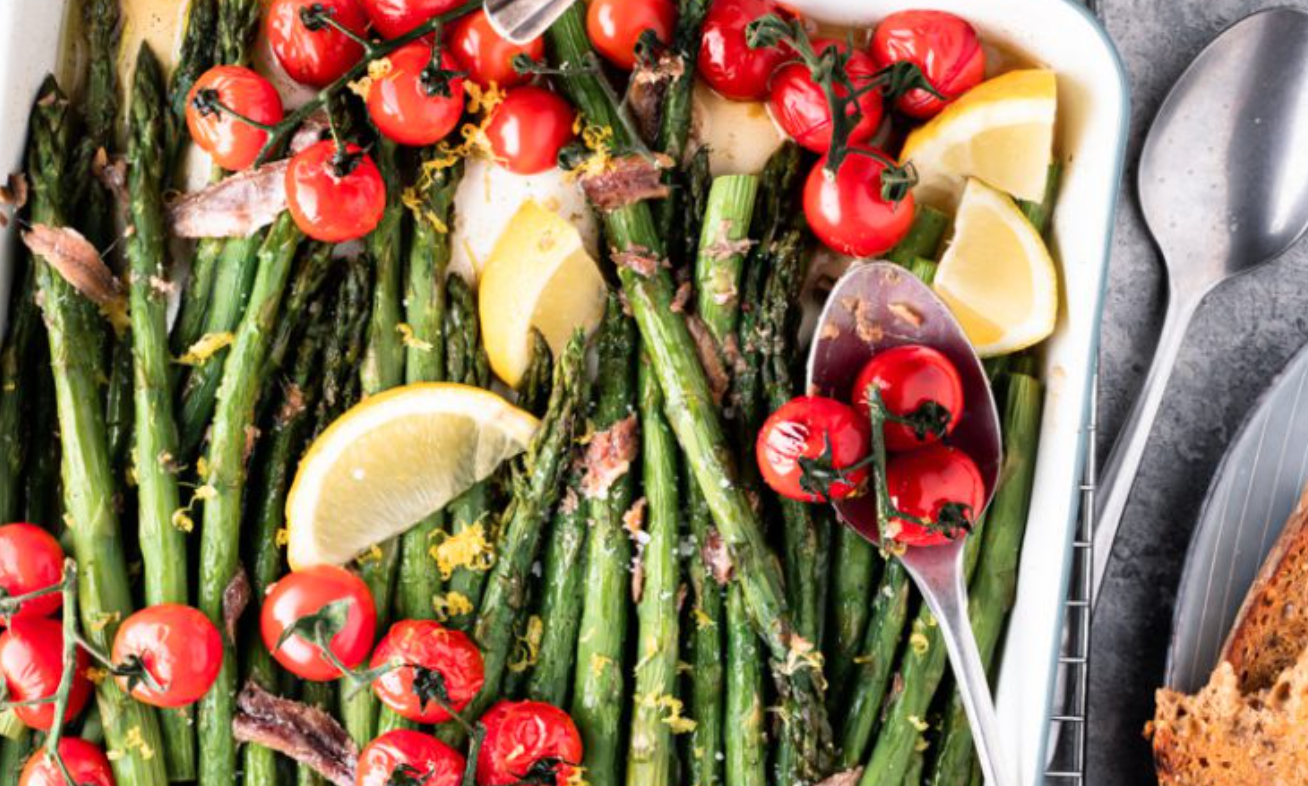Ben jij team wit of team groen? Wij zijn vooral fan van groene asperges. Je kunt ze koken, wokken of rauw eten, maar het lekkerste is om asperges te grillen of te roosteren in de oven. Dit is een lekker makkelijk recept voor geroosterde groene asperges uit de oven met een salsa van tomaat, citroen en ansjovis. Echt een smaakbom! De oven doet werkelijk al het werk voor je! Kan je in de tussentijd mooi een kop koffie drinken op de bank. De hoeveelheden zijn bedoelt als avondeten, serveer het lekker met knapperige toast. Liever als bijgerecht, dan kun je de helft aanhouden. Bak er dan bijvoorbeeld aardappeltjes bij en een een stukje zalm.