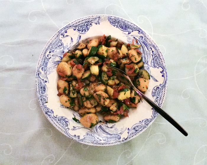 Ook mijn recepten zijn doorgaans voor vier personen, daar is nu eenmaal de meeste vraag naar. Vaak kun je de ingrediënten van recepten wel verminderen, of op z’n minst halveren (en/of de rest van het gerecht bewaren in de vriezer voor een volgende keer). Maar dat lukt niet altijd. Daarom speciaal mijn persoonlijk favoriete eenpersoonsmaaltijd: gnocchi.