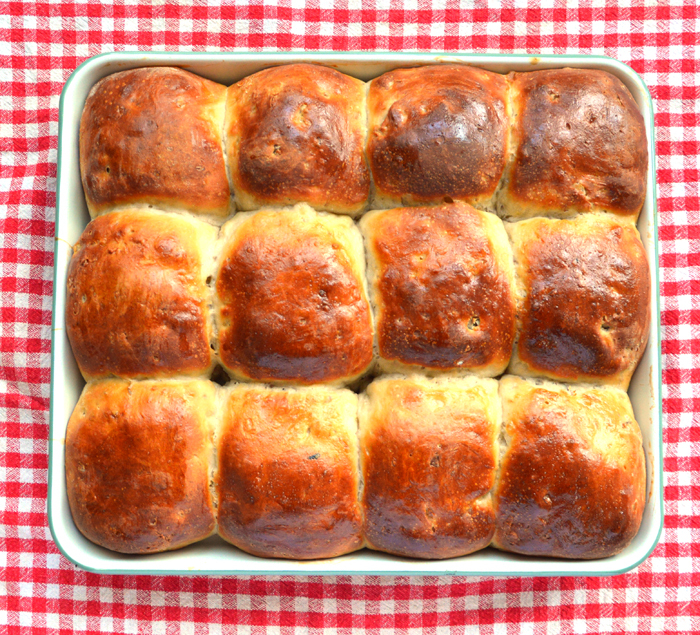Laatst had ik een lunch in restaurant De Nederlanden in Vreeland, en het was allemaal heerlijk en bovendien een warm bad van hartelijkheid, maar weet u wat me het meeste is bijgebleven? Hun broodjes. Die kwamen in een klein pannetje op tafel, net warm uit de oven. Kruimig en zacht onder een knapperig korstje. Voor je eigen veiligheid moet je in een restaurant nooit te veel brood snoepen, maar dit exemplaar wilde ik toch echt liefst helemaal oppeuzelen.