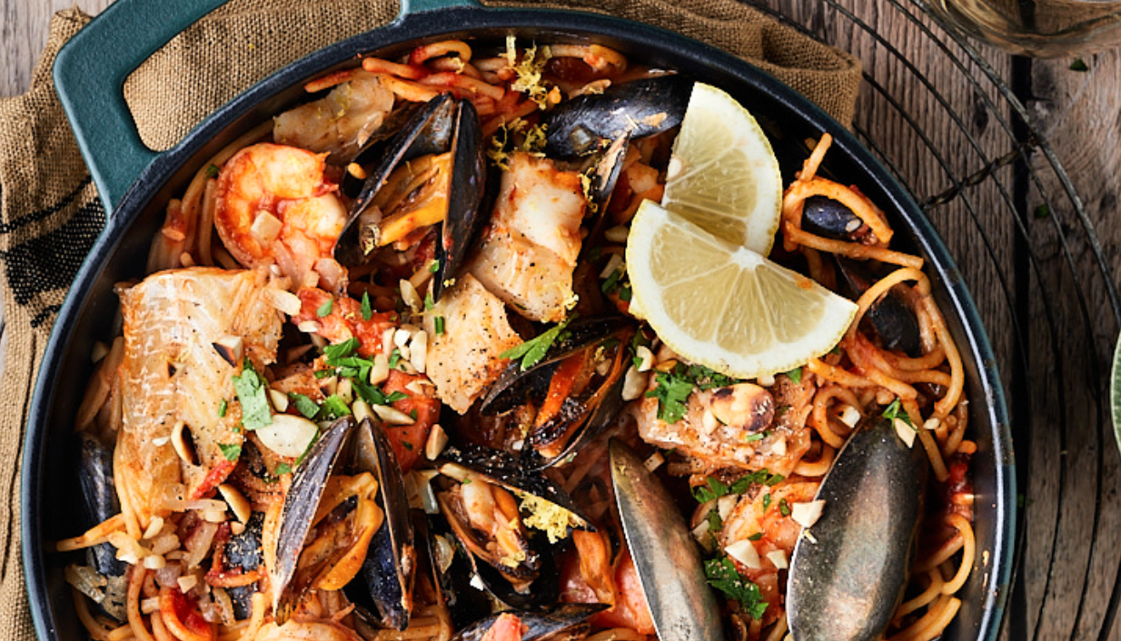 Fideuà klinkt misschien onbekend, maar dat maakt deze Spaanse pastaschotel met vis zéker niet onbemind. Dit recept is een droom voor liefhebbers van paella, en een perfecte combinatie van zeevruchten, vis en pasta. Fideuà is een heerlijk gerecht voor een speciale gelegenheid of in het weekend.