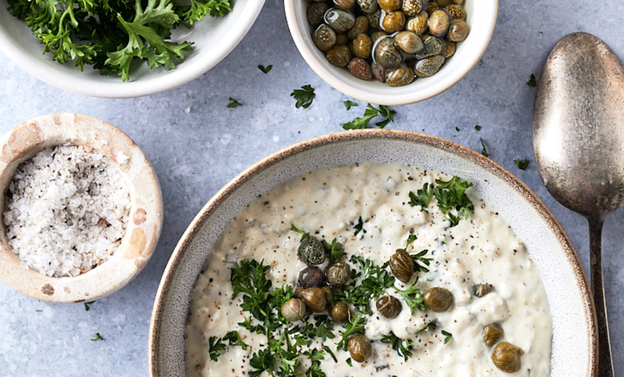 Ravigottesaus is een klassieker uit de Franse keuken, die vaak wordt geserveerd als een frisse, kruidige saus bij verschillende gerechten – zoals vis of vlees. De saus komt oorspronkelijk uit de Franse keuken en staat bekend om z’n heldere, kruidige smaak. Je maakt ‘m met fijngehakte verse kruiden, kappertjes, sjalot, en een vinaigrette-basis van olijfolie en witte wijnazijn. De romige structuur komt niet alleen van die olie, maar ook van een hardgekookte eidooier.