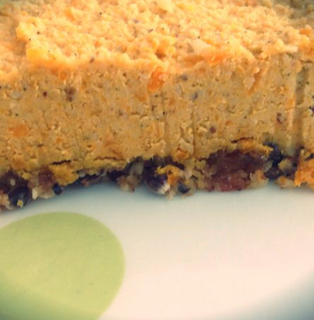 Een heerlijke rauwe pompoentaart, natuurlijk zonder toegevoegde suiker, lactose, gluten en bloem en boordevol met gezonde vetten, eiwitten en vezels.