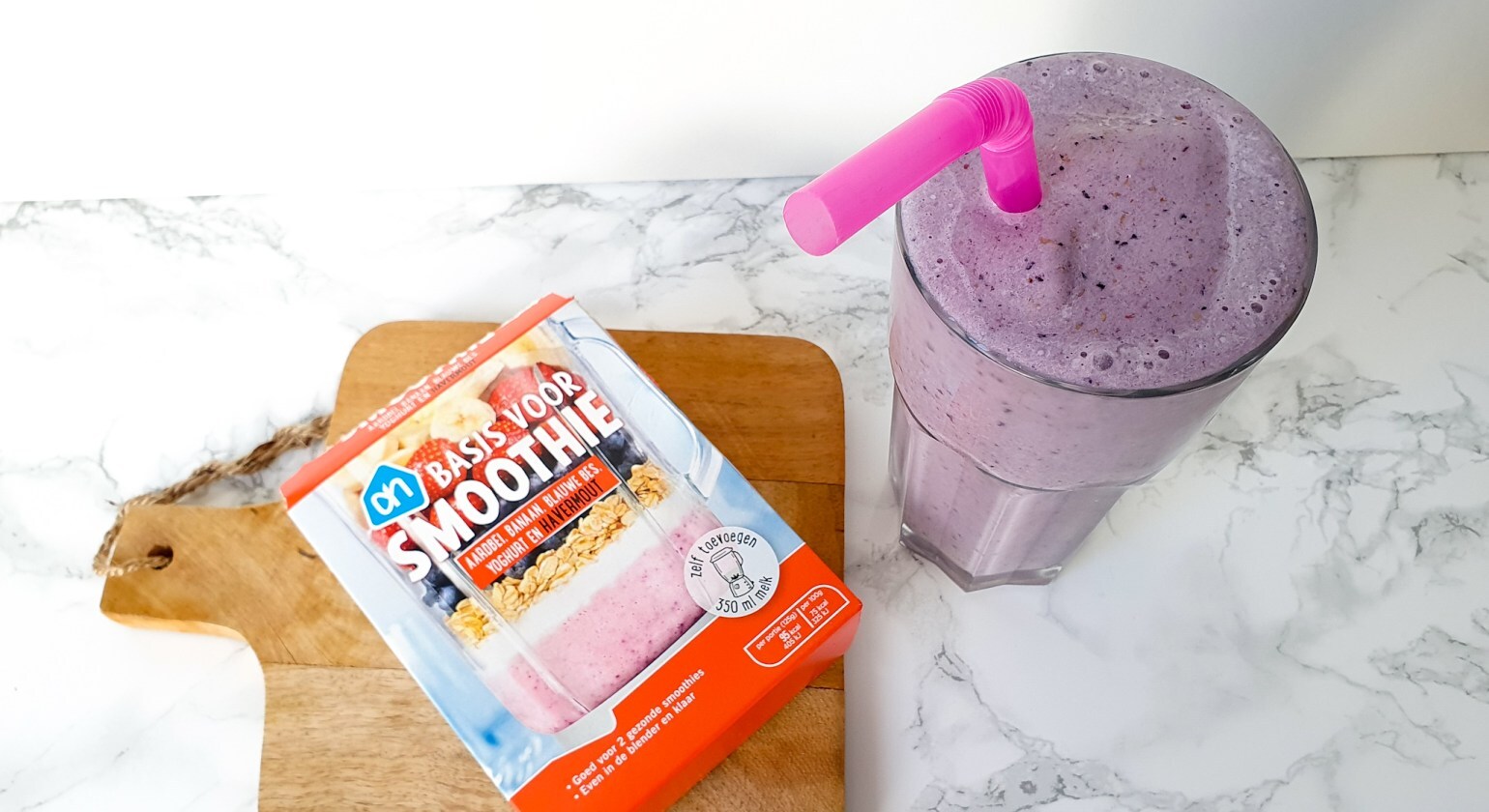 De naam van het product zegt het eigenlijk al, we hebben het vandaag over een kant en klare basis voor een smoothie. Het enige dat je zelf nog moet toevoegen is (plantaardige)melk. Ik vond twee varianten, eentje in de smaak banaan/aardbei en eentje in ananas/mango/banaan. Ik besloot de eerste mee te nemen…want de tweede was op #besteredenever