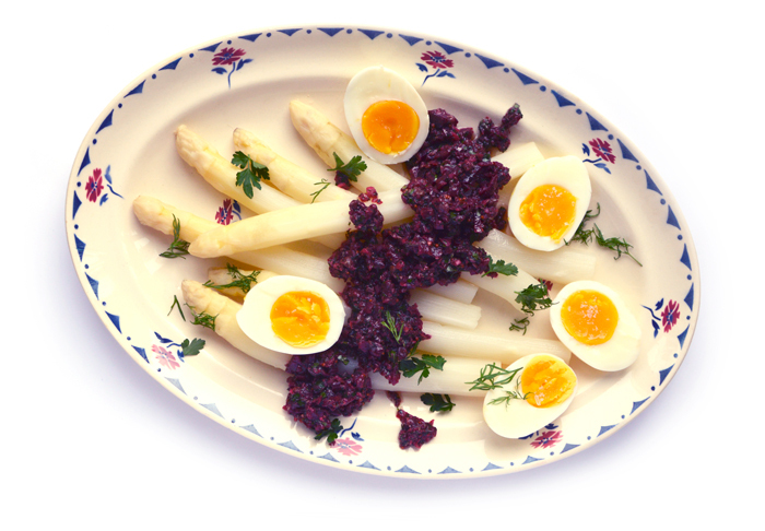 Bovendien wil het merendeel der mensen asperges toch het liefst ultraklassiek, met ham en ei en gesmolten boter of hooguit hollandaisesaus. Gezien de speciale stellages vol aspergesauspakjes in de supermarkt maakt menigeen daar jaar in jaar uit gebruik van. Een blamage, als je het mij vraagt.
