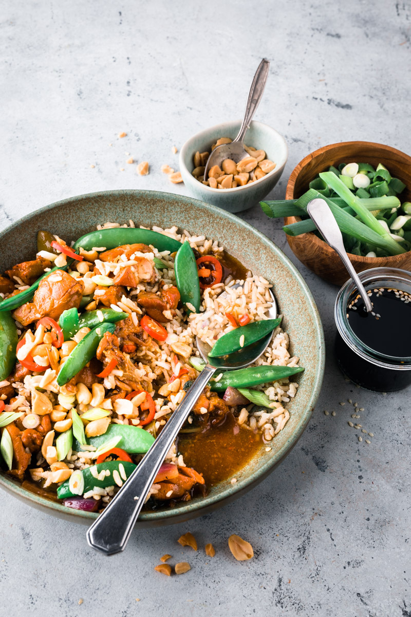 Deze lekkere en snelle klassieker moet je echt ook eens zelfgemaakt hebben: tjap tjoy met kip. Je kan de kip weglaten voor een vega variant. Alle ingrediënten zijn vers en daardoor extra lekker! Voor dit recept gebruikten we een wokmix. Als je zelf gek bent op sperzieboontjes, broccoli of peultjes dan kun je die natuurlijk ook gebruiken. Zo’n wokmix is gewoon lekker makkelijk. De naam tjap tjoy betekent gemengde groenten dus wanneer je zelf nog wat toevoegt doe je niets raars. Het is, zoals je waarschijnlijk wel weet een echt Kantonees Chinees gerecht waarbij de groenten worden gewokt en daarna in een saus gaar gekookt. De saus wordt gemaakt van oestersaus, sojasaus en bouillon. Tjap tjoy is natuurlijk heel lekker met rijst, kies lekker gezond voor zilvervliesrijst of volkoren basmatirijst.