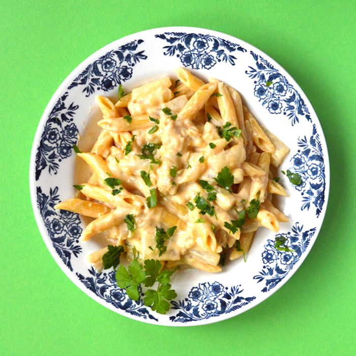 Alweer asperges? Jazeker! Want het seizoen is al bijna weer voorbij, dus profiteer ervan zo lang het kan. Dit keer gaan ze in de pasta, in de verte geïnspireerd op pasta carbonara, maar dan vega. En dat kwam allemaal door een asperge-maaltijdbox.