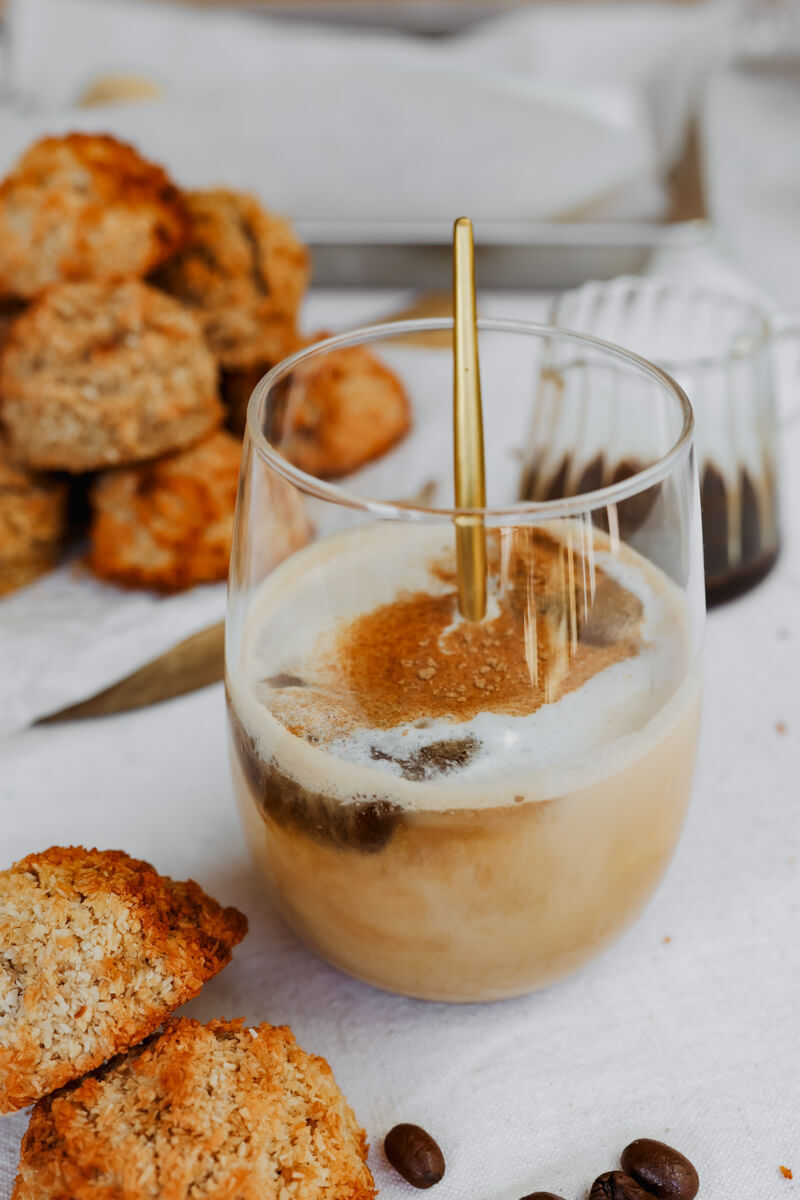 Het is warm, het is zonnig, en wat is er dan lekkerder dan een heerlijk romige ijskoffie? Romige ijskoffie met kokos en kardemom, welteverstaan. Echt een wáánzinnig lekkere combi. Mocht je dit lezen en denken ‘Mwah, kokos’, je kunt deze ijskoffie natuurlijk ook maken met gewone melk. Maar persoonlijk vind ik de combinatie van goede espresso, romige kokos en een snufje kardemom echt héérlijk.