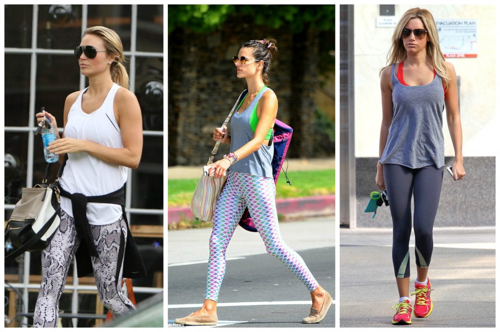 Ik begin direct met een paar toppers. de broek met slangenprint van Alex Gerrard (L) vind ik echt geweldig! De combinatie met een basic flowy witte top is naar mijn idee perfect. En als we het dan toch over gave broeken hebben, kijk die van Alessandra Ambrosio! Super gaaf, ook weer heel leuk gecombineerd met een basic top en een sportBH in een matchend kleurtje, love it. Ashley Tisdale gaat voor meer basic, maar ik vind het heel leuk dat het rood van haar schoenen terug komt in haar sportBH.