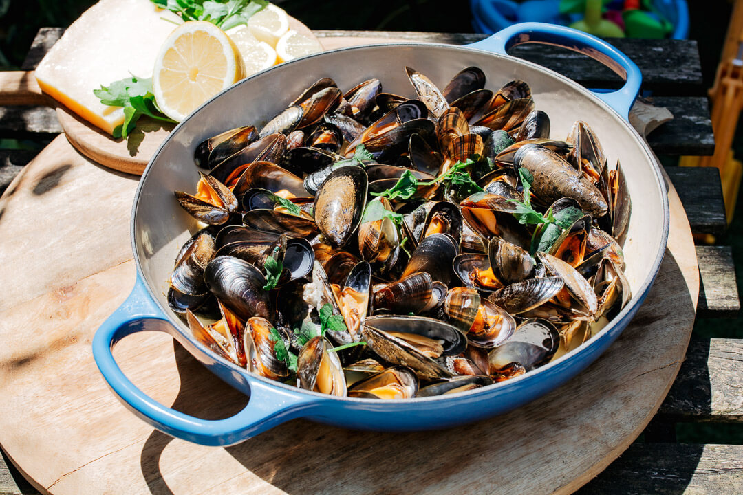 Vandaag heb ik zó’n een heerlijk recept voor je! Mosselen met parmezaanse kaas en citroenroom. Romig, ziltig, fris. Deze mosselpan heeft het allemaal. We koken de mosselen in een romige saus gemaakt van room, parmezaanse kaas, citroensap, citroenrasp en verse peterselie. Serveer daar vooral knapperig brood bij om de saus mee op te dippen.. En trakteer jezelf op een glas Albariño uit Rias Biaxas! Deze wijn gaat fantastisch bij deze zomerse mosselpan. En (extra fijn tijdens warme zomerse dagen) dit eenvoudige recept staat binnen tien minuten op tafel.