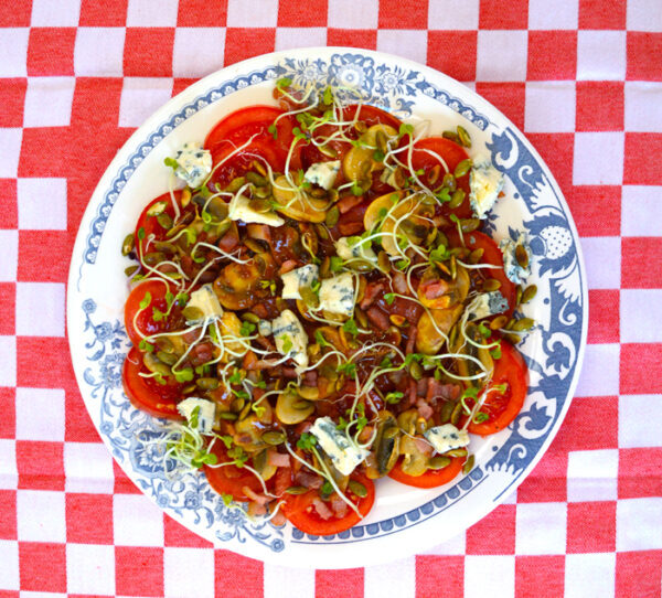 In mijn geval dwalen mijn gedachten doorgaans al snel af naar eten. Of ik bijvoorbeeld niet weer eens zelf tuinkers moest zaaien? Lekker en zo gepiept. O, en wacht eens even, wat was ook alweer dat jarenlang favoriete recept uit de Allerhande van een tomatensalade met tuinkers? Terug in Nederland vond ik na lang zoeken zowaar het tijdschriftknipsel weer terug. Zó oud, dat op de achterkant een reclame staat voor (nieuw! nieuw!) Coca Cola light.