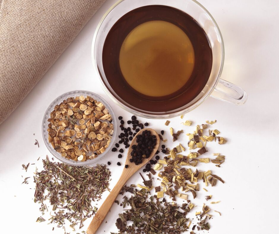 Nu de herfst voor de deur staat en daarmee de dagen korter en kouder worden, is het een goed idee om die vervelende verkoudheid en griep die er vaak bij komt kijken voor te zijn. Hoe fijn is het om je een immuunsysteem een boost te geven door elke dag een kopje van deze heerlijke thee te drinken. Wij pakten een aantal kruiden van Jacob Hooy uit de keukenkast en maakten deze melange. Mijd deze thee als je een hoge bloeddruk hebt, want zoethout kan dit verergeren.