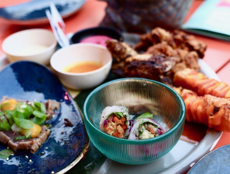En het eten dan? Je toko kan er dan wel fantastisch uitzien, maar het eten moet natuurijk ook on point zijn. En ja, dat is het! We begonnen met een aloha platter gevuld met jerk chicken wings, tonijn tataki, Caribische kip, vegan springrolls, jalapeño mayo, funchi frieten en platbrood met bietendip. Perfect plateau om te delen als starter of als borrelhap bij een paar lekkere cocktails. Ze hebben ook verschillende biertjes trouwens. Als hoofdgerecht kies je losse gerechtjes van de kaart óf he stelt je eigen plateau met verschillen hapjes samen. Wij deden het laatste. Er is ook genoeg vegan keuze. Je kiest per persoon één gerechtje uit de verschillende cirkels (als je de menukaart ziet snap je waar ik het over heb) en al die gerechten samen worden dan op een groot plateau. Jaloerse blikken gegarandeerd.