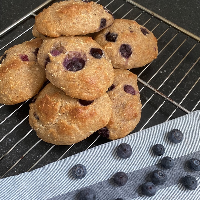 Met het meel kan je variëren. De eerste keer maakte ik de bolletjes met boekweitmeel, hierdoor waren ze glutenvrij, maar dit meel heeft wel een uitgesproken smaak. Mijn voorkeur gaat dus uit naar speltmeel. Uiteraard kun je met het fruit ook variëren, denk aan aardbeien of frambozen.