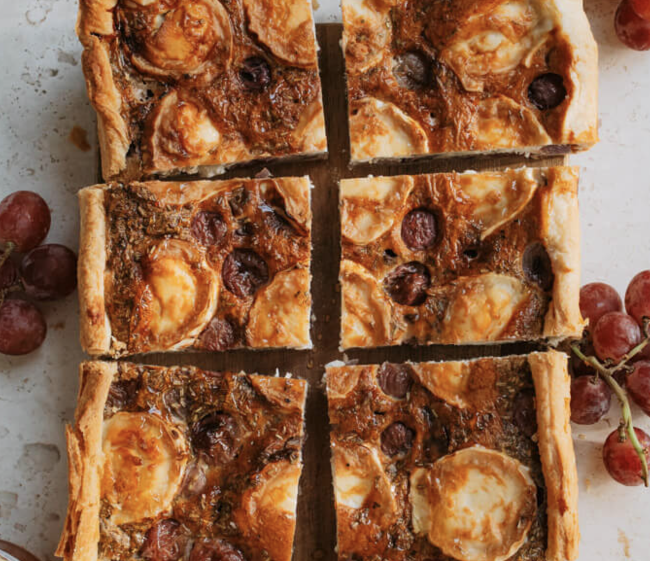 Download HealthyApp nu gratis voor iPhoneQuiche met geitenkaas, honing en geroosterde druiven