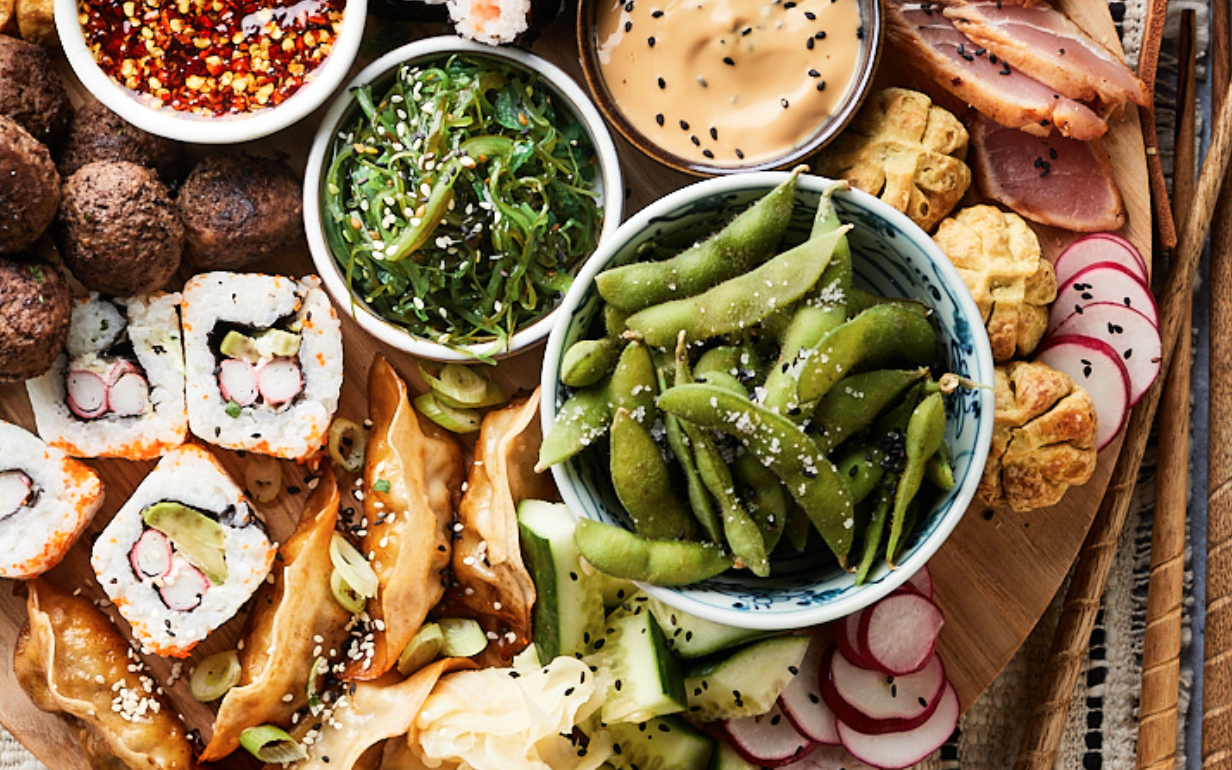 Deze Aziatische borrelplank is een superleuk alternatief voor de standaard Hollandse hapjes op een verjaardag, en weer heel anders dan een Midden-Oosterse borrelplank of Spaanse pintxos. Lekker kleurrijk, vol verschillende smaken en een fijne mix van zelfgemaakt en kant-en-klaar. Hier kun je alle kanten mee op: misschien kies je voor gemak en koop je alles kant-en-klaar, of ga je juist helemaal los en maak je zoveel mogelijk zelf. Net wat je leuk vindt (en hoeveel tijd je hebt).