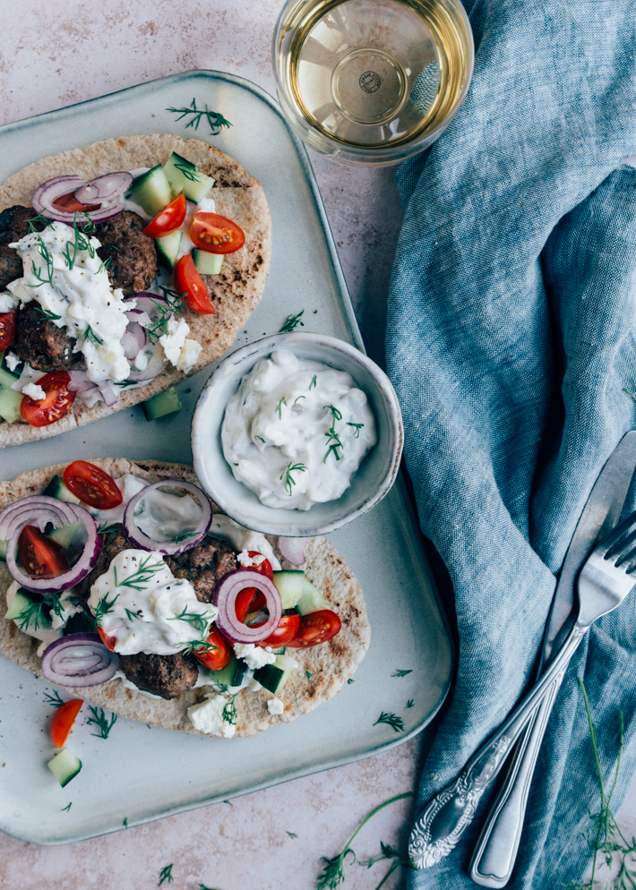 Dit recept voor Griekse pitabroodjes met gehaktballetjes is voor mij het ultieme comfortfood. We kennen natuurlijk allemaal de pita gyros. Als we op vakantie zijn in Griekenland eet Chris er het liefst elke dag één. Ik ben meer fan van deze versie, pitabroodjes met gehaktballetjes. De gehaktballetjes brengen we op smaak met oregano en erbij serveren we tzatziki en lekkere, romige feta.