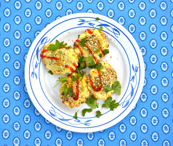Lang leve de oven, ideaal voor luie thuiskoks. Zelfs (kant-en-klare) ravioli blijk je in de oven te kunnen bakken. Sterker nog, dan worden het heerlijk krokante, goudbruine planeetjes. Een oersimpel en verrassend voorafje, zeker in deze versie met koriander en sriracha.