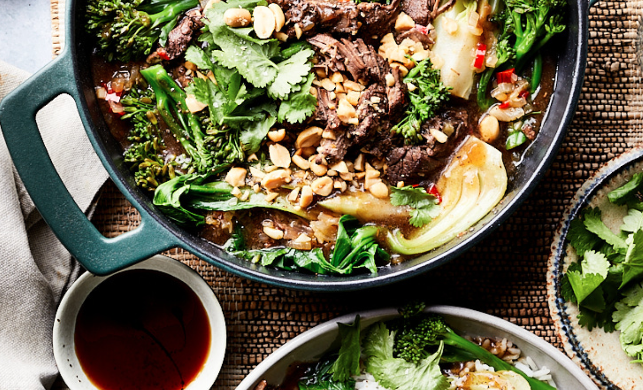 Dit Aziatisch stoofvlees moet je een keer geprobeerd hebben. Zacht rundvlees dat urenlang heeft staan pruttelen in een kruidige saus vol smaak. En dat met lekker veel groenten en een kommetje rijst erbij, dan heb je een maaltijd waar iedereen aan tafel gelukkig van wordt. We vinden het heerlijk om dit soort gerechten te maken als het buiten wat frisser is, want terwijl de pan rustig op het vuur staat, vult onze keuken zich met de lekkerste geuren. En er is toch niets fijner dan na een drukke dag de deksel van een stoofpan halen en weten dat je straks een bord vol comfort food voor je hebt?