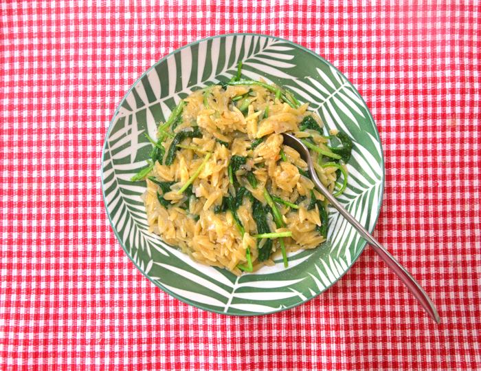 Toen vertelde ze me dat het enorme smaakverschil ook komt omdat specerijen uit de supermarkt vaak al twee jaar onderweg zijn voordat ze in de schappen belanden. Niet zo gek dat je dan nog maar een fractie van de smaak proeft. Eigenlijk best raar dat fairtrade koffie en slaafvrije chocola intussen algemeen ingeburgerd zijn in Nederland, maar dat niemand zich afvraagt hoe het zit met de herkomst van specerijen. Dat is gewoon een soort ondefinieerbaar goedkoop bulkgoed van ergens ver weg. Iona wil eerlijke handel drijven door de boeren een goede prijs te betalen, zodat die zonder chemicaliën en pesticiden de beste kwaliteit specerijen kunnen verbouwen in harmonie met de natuur. En ja, dat verschil proef je dus wel degelijk. Tijdens het diner kreeg ik een bordje orzotto (risotto van orzo) voorgeschoteld met spinazie en citroen. Maar vooral: op het laatst wat nootmuskaat vers eroverheen geraspt van een geurig bolletje uit Sri Lanka. Dat ging ik thuis meteen namaken. Maar dan met raapsteeltjes uit eigen tuin, plus ook wat venkelzaadjes, mijn lievelingssmaakmaker. Zo simpel kan lekker eten zijn.
