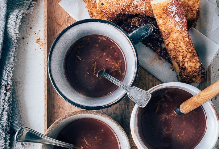 Download HealthyApp nu gratis voor iPhoneWarme chocolademelk met sinaasappel en kaneelsoldaatjes