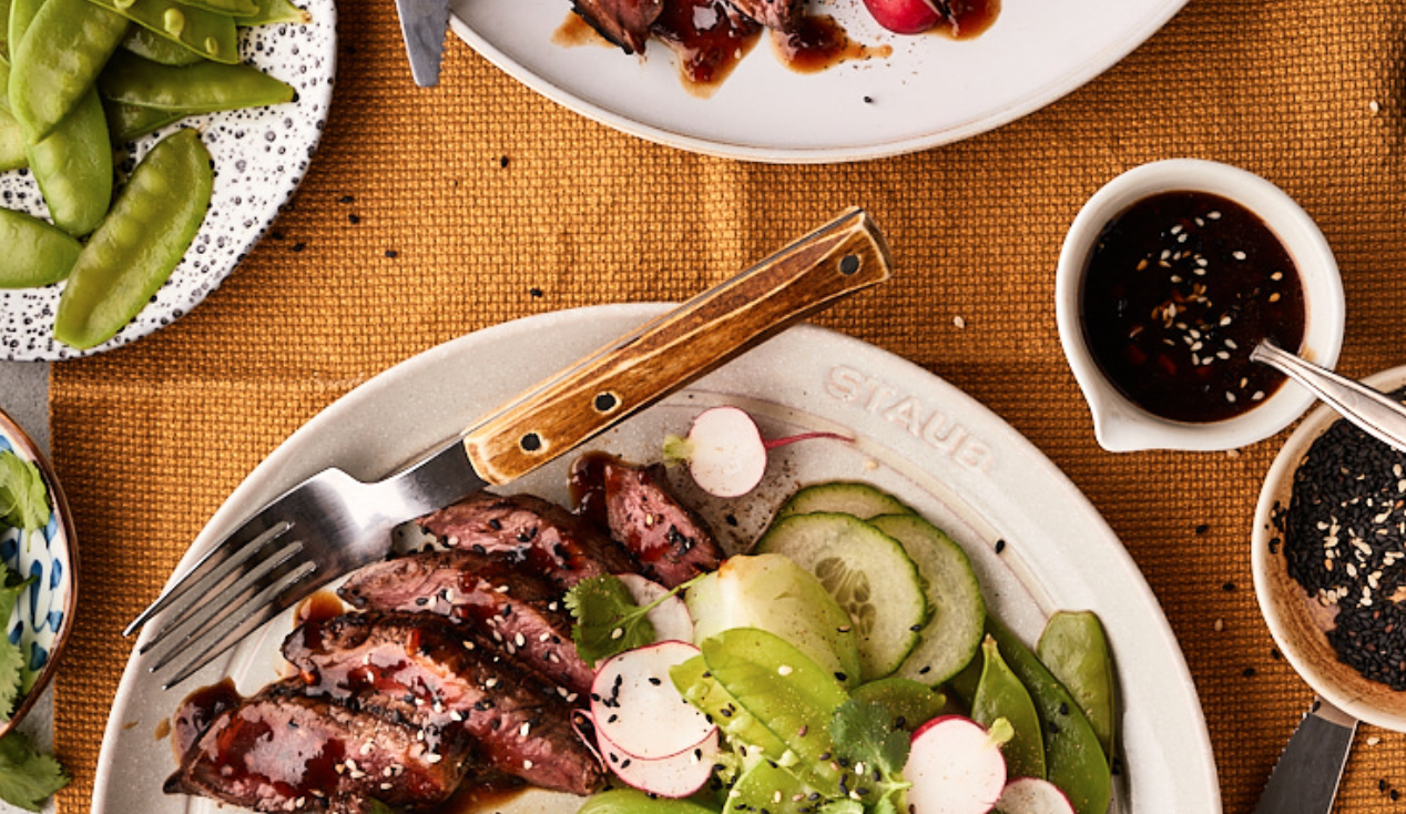 Eén van onze favoriete wereldgerechten uit het Oosten, is beef teriyaki. Klinkt ingewikkeld, maar geen paniek: het is eigenlijk heel simpel. Denk aan malse biefstuk in een teriyakisaus van sojasaus, bruine suiker, knoflook, gember en sesamolie. Laat die smaken lekker mengen, en terwijl de biefstuk marineert maak je groenten klaar: knapperige peultjes, radijsjes, komkommer en paksoi. Als de biefstuk klaar is om te schitteren, bak je hem in de hete grillpan. Ondertussen kook je de groenten tot knapperig en beetgaar. Giet de extra teriyaki-saus over het vlees, strooi wat sesamzaadjes over het geheel en voilà! In slechts 30 minuten bereidingstijd (plus wat marinade-tijd) heb je een fantastisch gerecht op tafel staan.