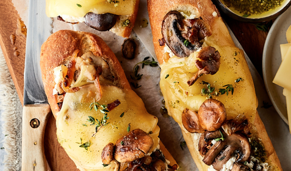 Dit raclette kaasbrood met pesto-olie is het ultieme weekendbroodje (of katervoer…). Stel je voor: een knapperig stokbrood gevuld met smeltende raclette kaas, sappige kippendijfilet, uien, paddenstoelen en romige ricotta. Hier ben je wel eventje voldaan van! Je kunt hier trouwens uitstekend wat ouder stokbrood voor gebruiken, dat je bijvoorbeeld over hebt van een feestje of gourmet-avond.