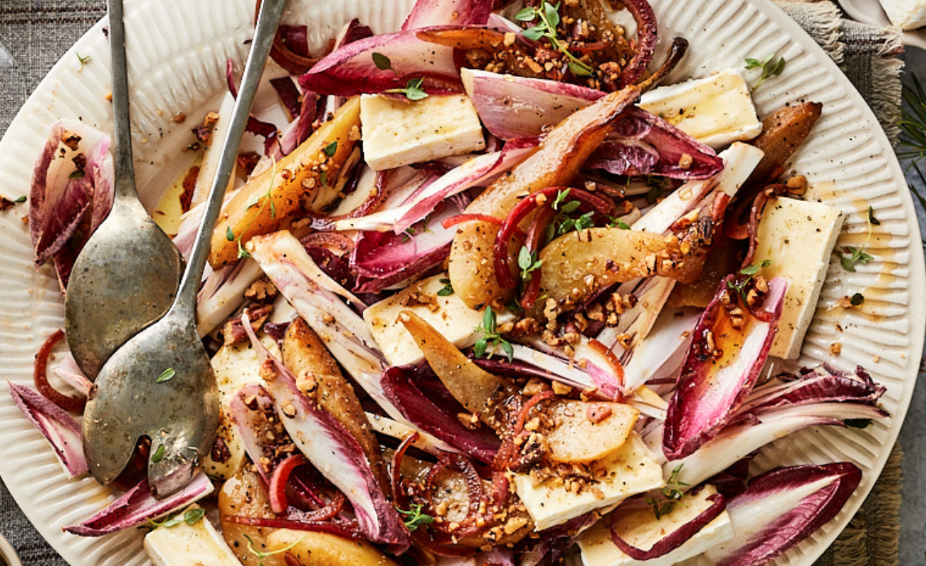 Deze roodlof salade met peer, brie en walnoten is precies wat je wil op een najaarsavond: warm, kruidig, een tikkie zoet en toch lekker fris. Het is een salade, maar dan net even anders. Ook superlekker alskerst bijgerecht! Je kunt ‘m makkelijk serveren als voorgerecht (op losse bordjes) of bijgerecht (op één grote serveerschaal) bij een etentje of als onderdeel van een uitgebreid family style dinner.